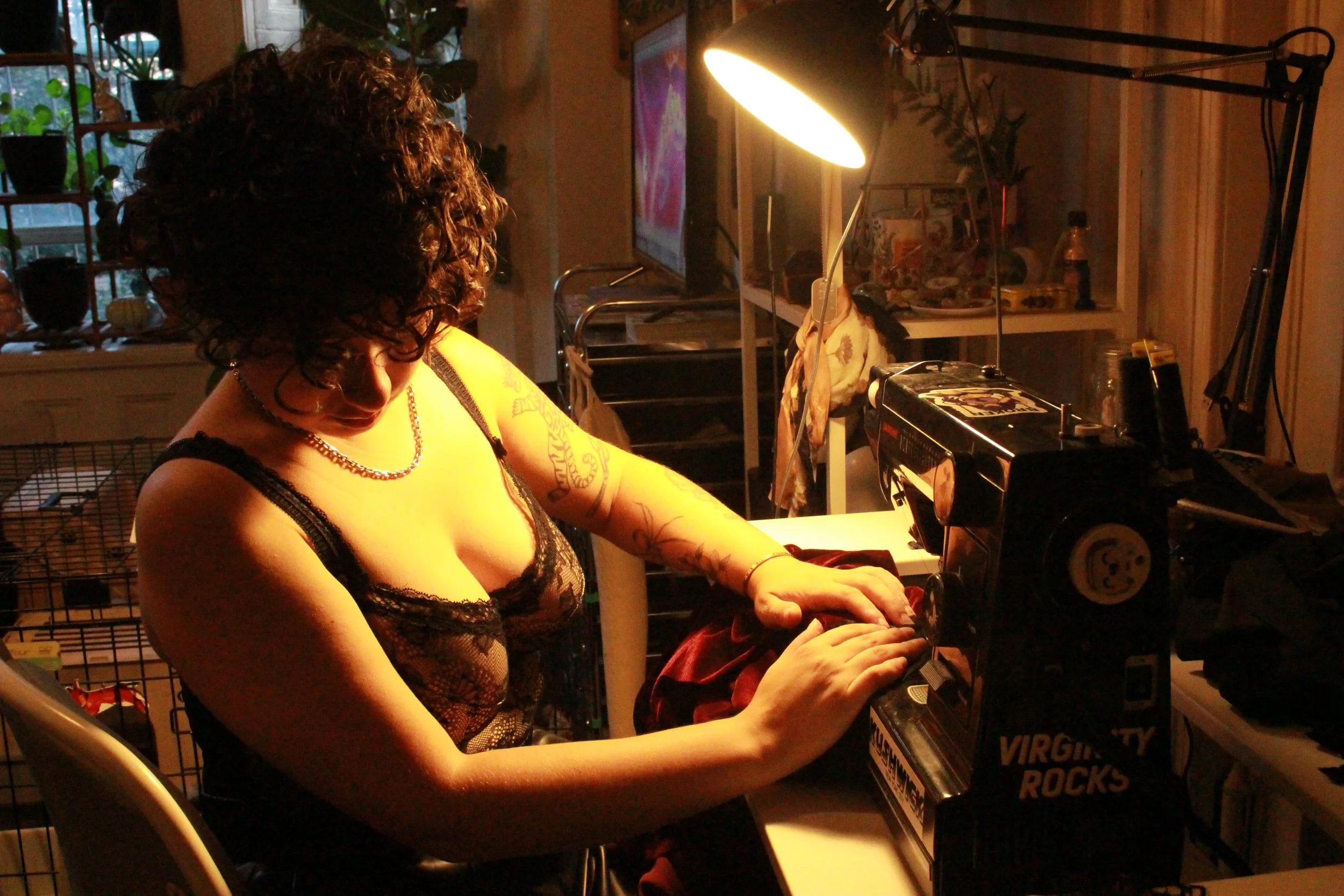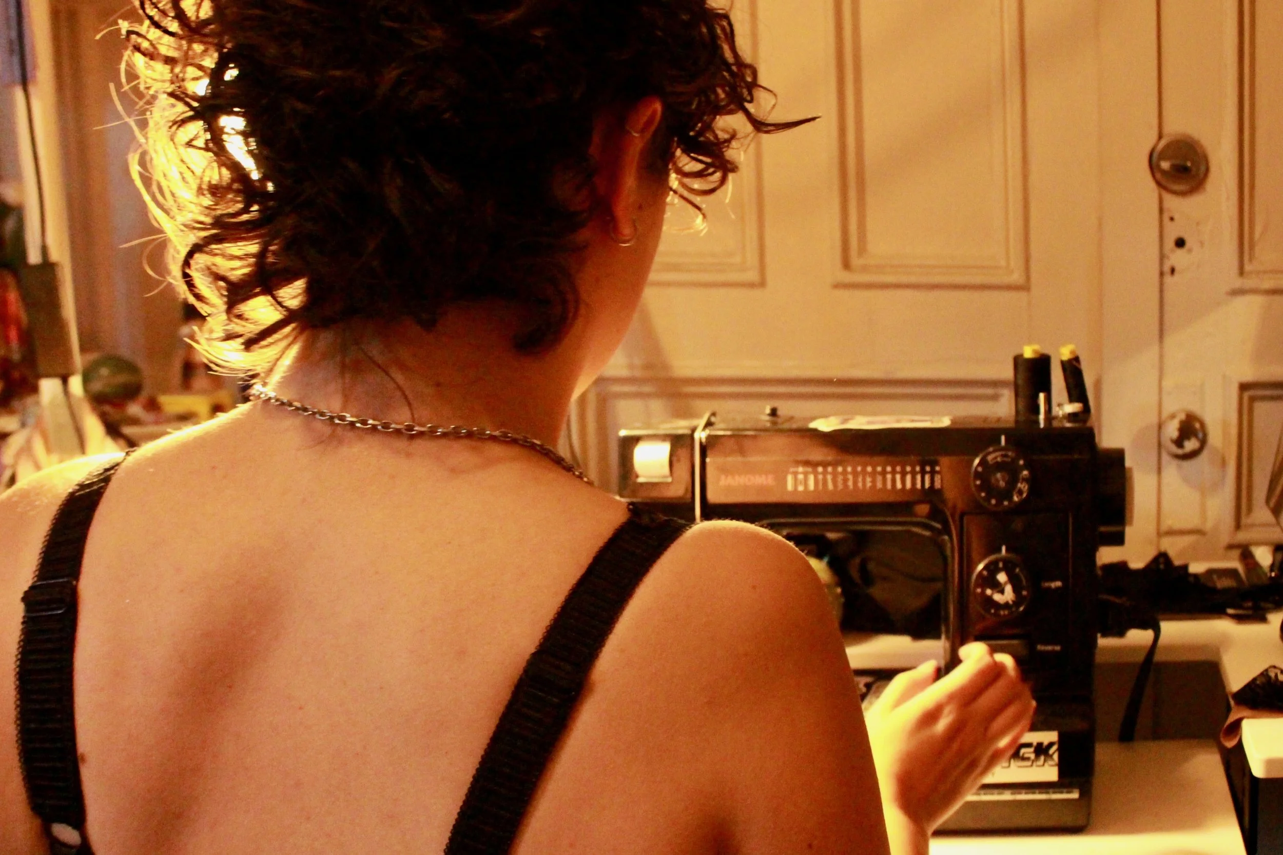 Jasey’s journey began at eight years old, mentioning in conversation that, “...going through Borders Bookstores with my dad, there was a sew your own felt bear kit, and I wanted it to make a little teddy bear” – to which her father responded with, “Well, you don’t know how to sew,” sparking Jasey’s interest in becoming self taught to make creations of her own. While she was a toddler, her mother reminisced and explained that Jasey would only be interested in clothing with the Tommy Hilfiger logo, she would only wear clothes she believed were of good taste. Considering growing up in the 2000s, the well known y2k era, a lot of her younger fashion interest came through these early fashion icons, styles, and brands. During her starting days and throughout her journey of self-taught sewing, she mentions using large gauged needles to ease her way into the work, which also held less of a hazard for a younger creator. From there, Jasey, at twelve years old acquired her first sewing machine, and began making cosplays in high school. These designs she included in her portfolio, which gave her admittance to resources and education at FIT.